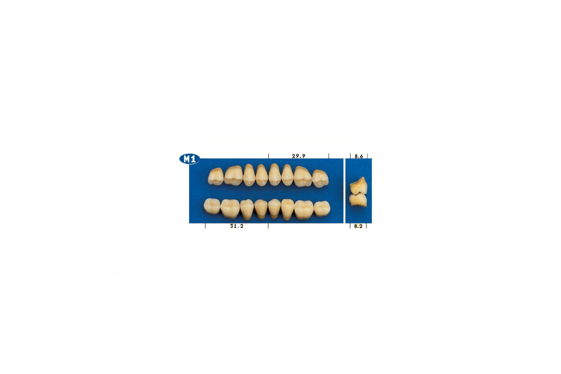 Denti in resina a 3 strati. Qualità: durezza elevata; rilevante resistenza all'abrasione; stabilità di colore; resistenza all'adesione della placca.